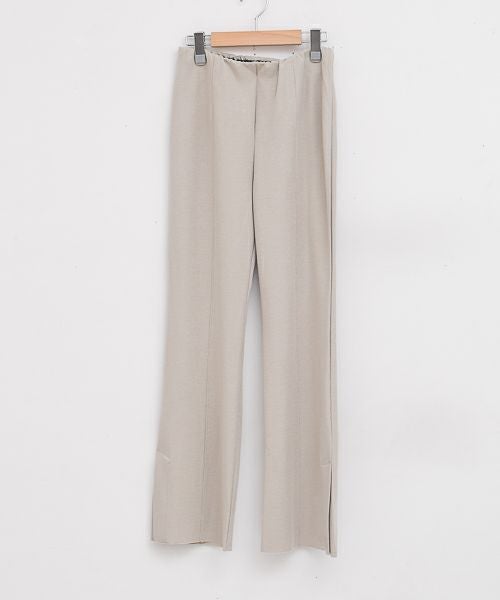 モダール混のひんやりとした肌触りが心地よいフレアパンツ。リブ素材ながら落ち感と程よい光沢で上品に仕上げ、脚長効果のあるシルエットと裾のサイドベンツが軽やかな抜け感を演出します。インゴム仕様で快適なはき心地を叶え、デイリーから主役使いまで幅広く活躍する万能アイテムです。
