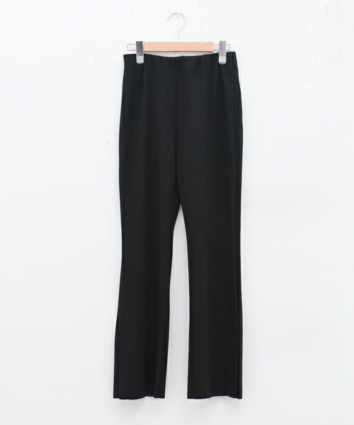 モダール混のひんやりとした肌触りが心地よいフレアパンツ。リブ素材ながら落ち感と程よい光沢で上品に仕上げ、脚長効果のあるシルエットと裾のサイドベンツが軽やかな抜け感を演出します。インゴム仕様で快適なはき心地を叶え、デイリーから主役使いまで幅広く活躍する万能アイテムです。