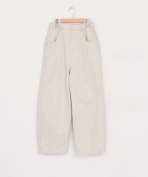 程よいハリ感のあるコットン素材に、ウォッシュ加工を施したワイドパンツ。切替デザインがさりげないアクセントになり、シンプルながらも表情のある一本です。リラックス感のあるワイドシルエットで、体のラインを拾いにくく、デイリーに快適な穿き心地。Tシャツやシャツはもちろん、きれいめトップスとも相性が良く、幅広いスタイリングに活躍します。