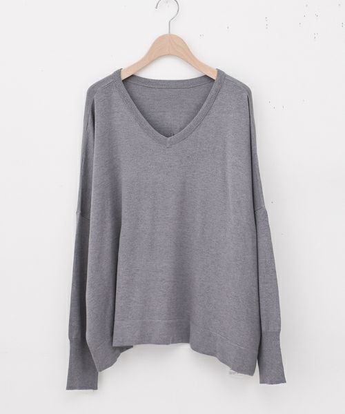 前後2wayで着用できるロゴニット。前は抜け感のあるVネック、後ろはロゴ入りのクルーネックデザインで、気分に合わせて印象チェンジが可能。ゆったりとしたポンチョシルエットと脇スリットが軽やかな抜け感を演出し、旬のリラックスムードを楽しめます。