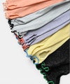 色使いや花びらのようなシルエットがかわいいアームカバーが登場しました。 綿糸を使ってゆるめに編みたてているのでピタっとし過ぎないようにしています。 すこし長めなので二の腕までつけられるし、くしゅっとつけてもOK! お好みに合わせてお使いいただけます。 UV加工を施していますので、強い日差しの下でも安心です◎ 内側親指部分に指穴を開けてあるので、手の甲までしっかり覆うことが可能です。 裾にメロウがあることで、手首で使う場合もおしゃれにキマります◎