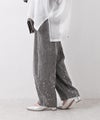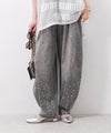 6ozの軽やかなデニム素材に、存在感のある箔プリントを施したモロッコパンツ。ウエストはイージー仕様で、ストレスフリーな穿き心地。ゆったりとしたラインが体のラインを拾いにくく、抜け感のある大人カジュアルを叶えます。箔プリントは一点一点手作業で加工されており、仕上がりには個体差があり、それぞれ異なる表情をお楽しみいただけます。同じものが二つとない、特別感のあるアイテムです。