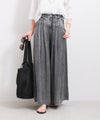 シルクのような自然な光沢感で、柔らかくしなやかな素材です。再生繊維ならではの肌への優しさ、吸水速乾性による快適な着心地を提供します。リラックス感あるワイドシルエットながらも、タック入りのウエスト周りが上品な印象を与え、存在感ある加工とのバランスが絶妙な1着です。