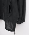 軽やかな透け感が魅力のシアー素材を部分的に切り替えた、トレンド感あふれるラグランブルゾン。身幅や袖幅はゆったりとしており、さっと羽織れる一枚です。ダブルジップデザインで上下の開閉でシルエットや抜け感の調整が可能です。日よけや冷房対策にも活躍する、これからの季節に頼れるアイテムです。